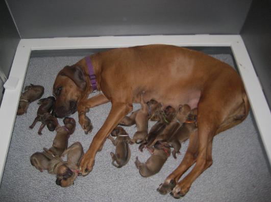 Puppies arrived April 11 & 12 7 boys & 5 girls. Mali & puppies are